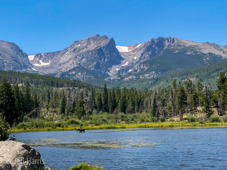 In August 2020, Melissa and I spent a long-overdue girl’s weekend in Estes Park and RMNP. This was the first time I’ve been in the park and not seen elk. At Sprague Lake, though, we had the great pleasure of seeing a moose enjoying lunch in the lake.